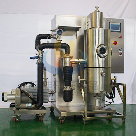 1、噴霧冷凍干燥機把噴霧干燥和真空冷凍干燥二者有機的結合起來,所需的干燥時間極短,極大的縮短了傳統(tǒng)的真空冷凍干燥時間,且干燥后的物料為粉狀的固體,經噴霧冷凍干燥的物品,原有的生物、化學特性基本不變,易于長期保存;